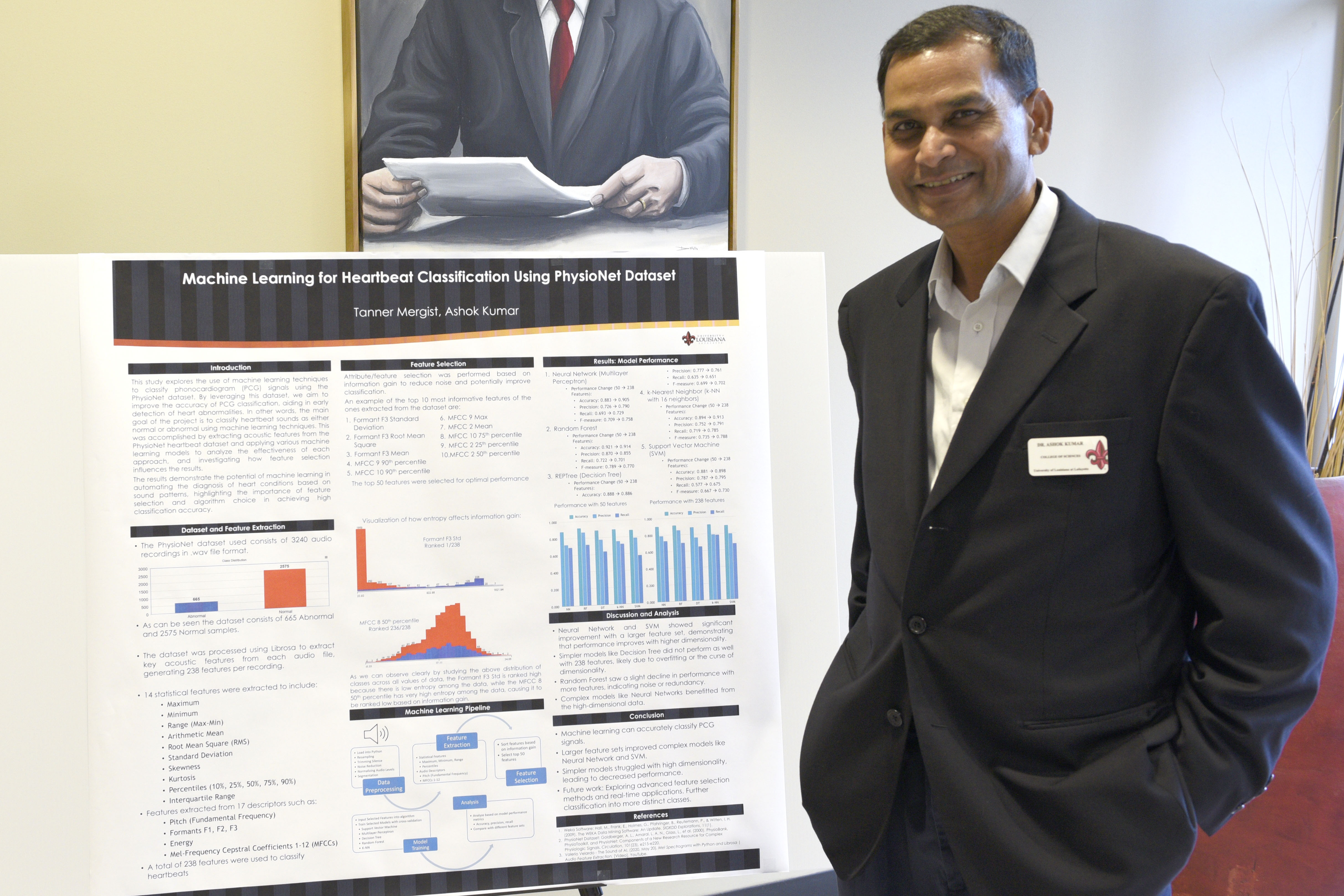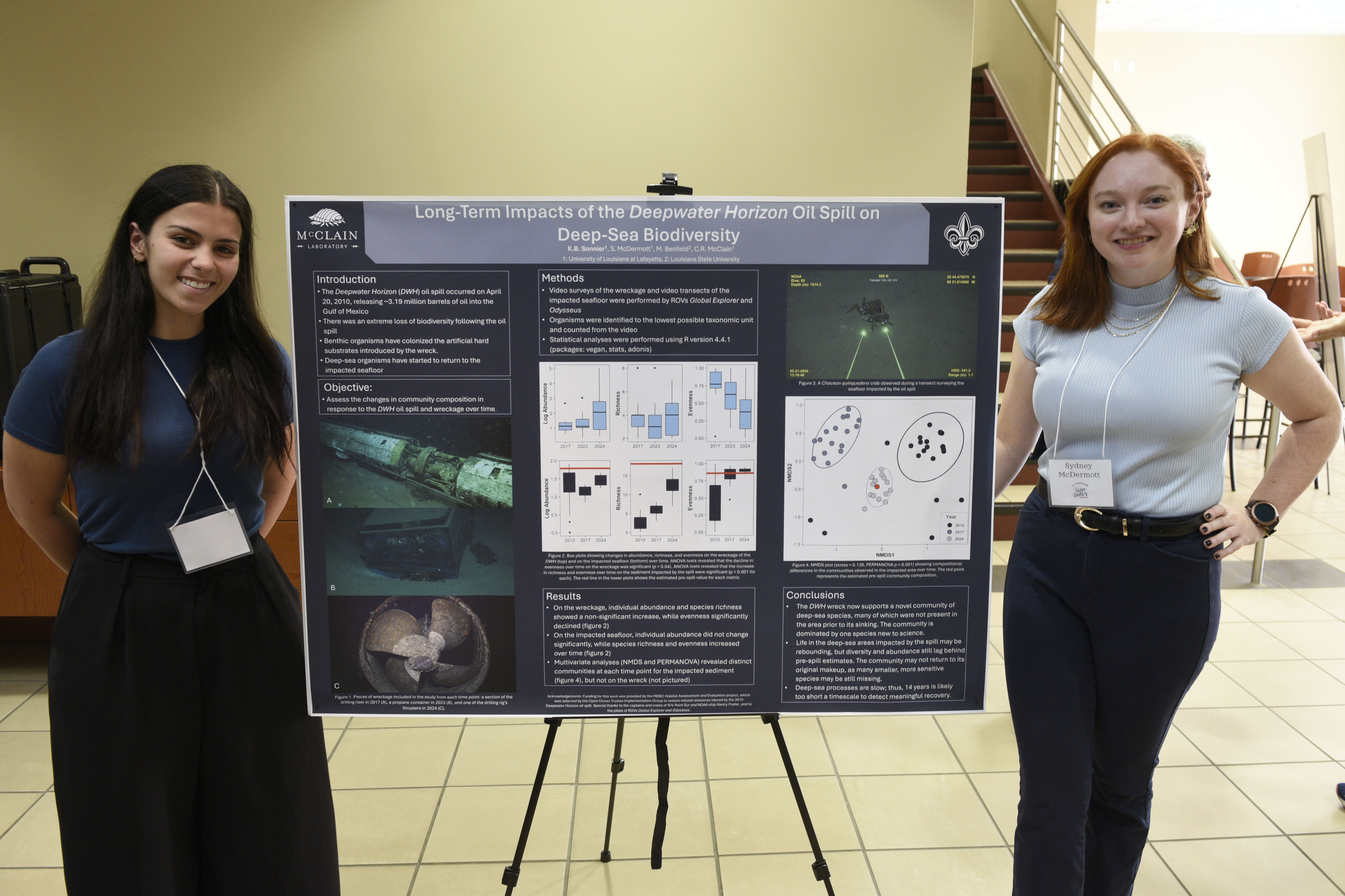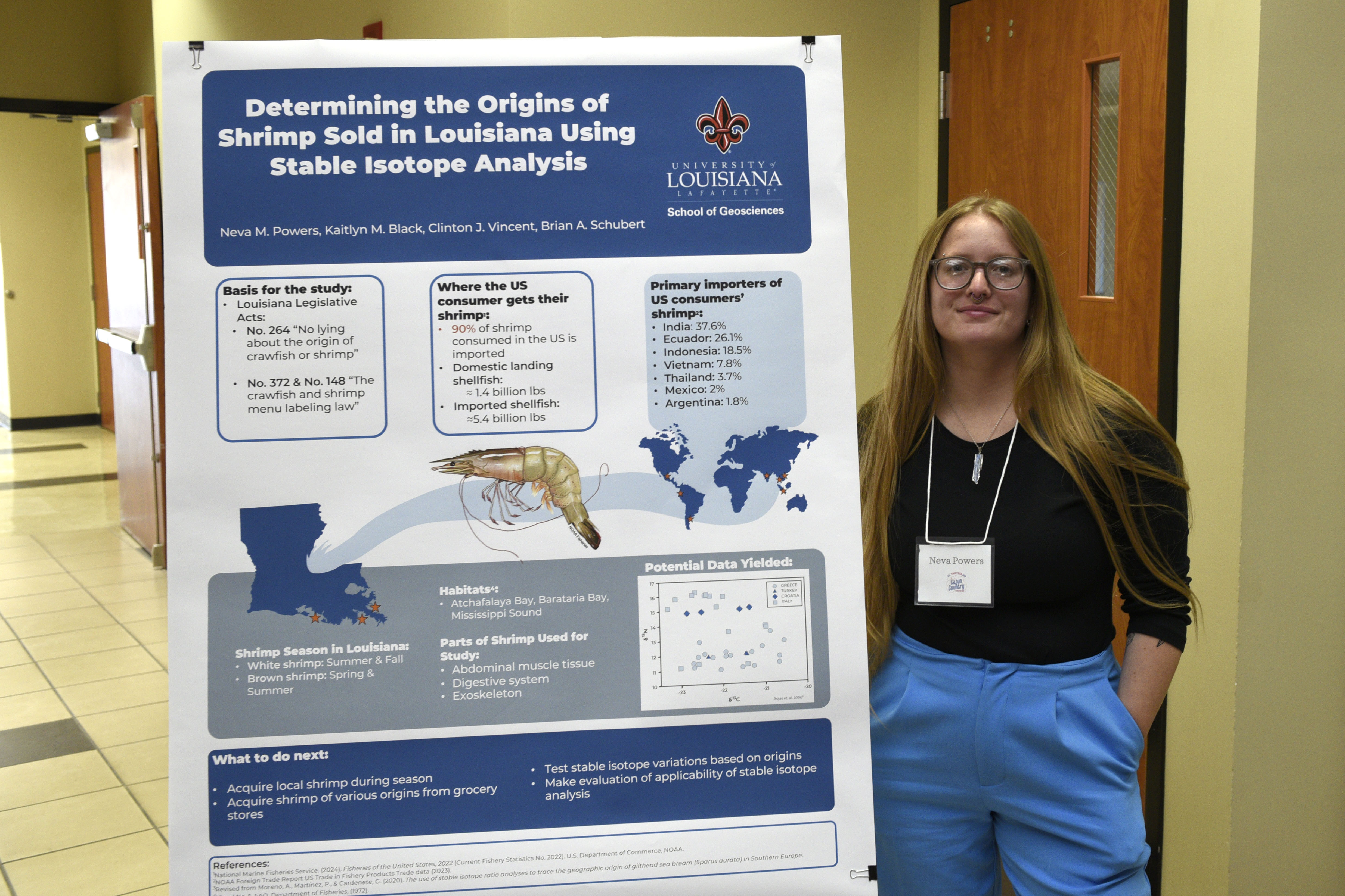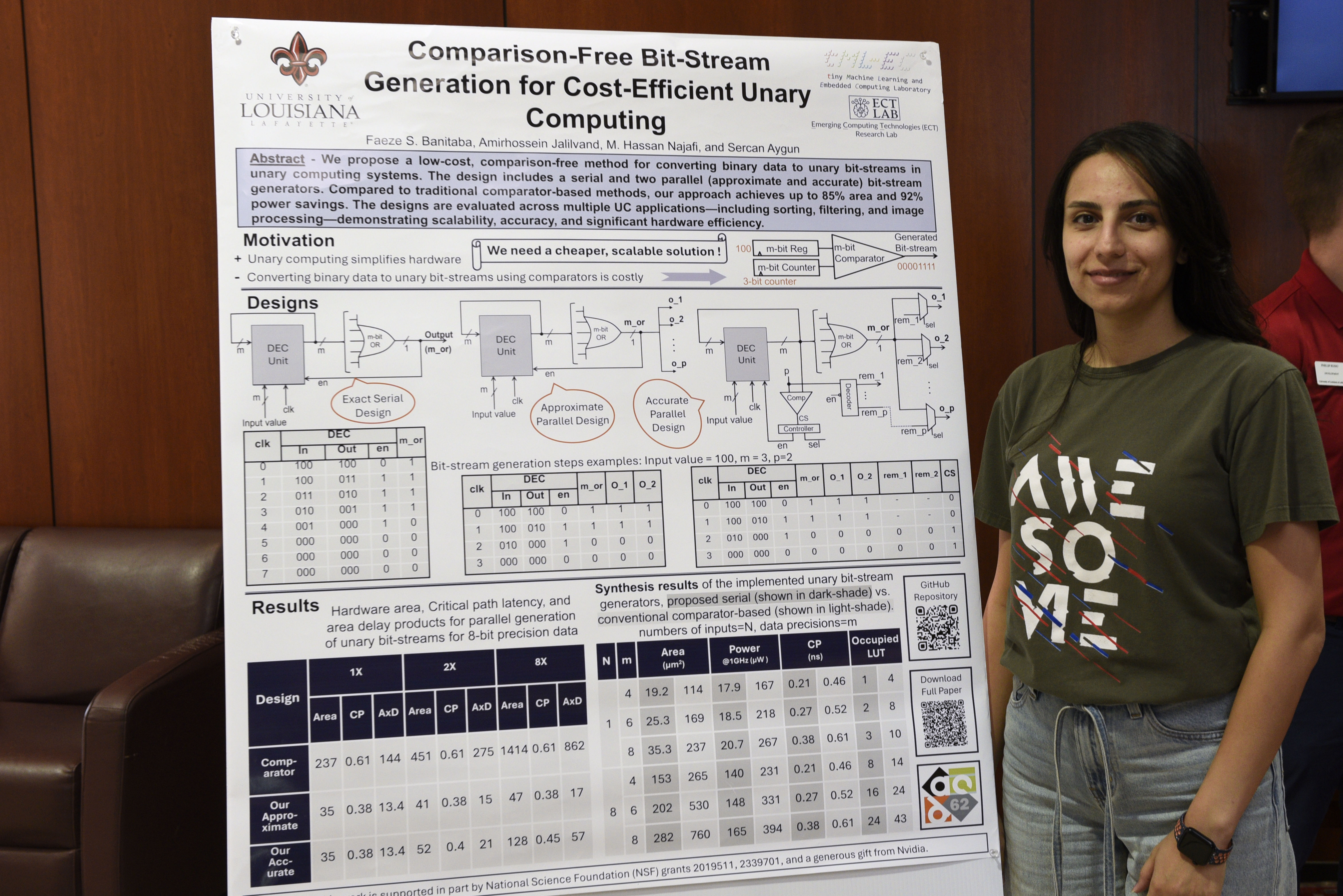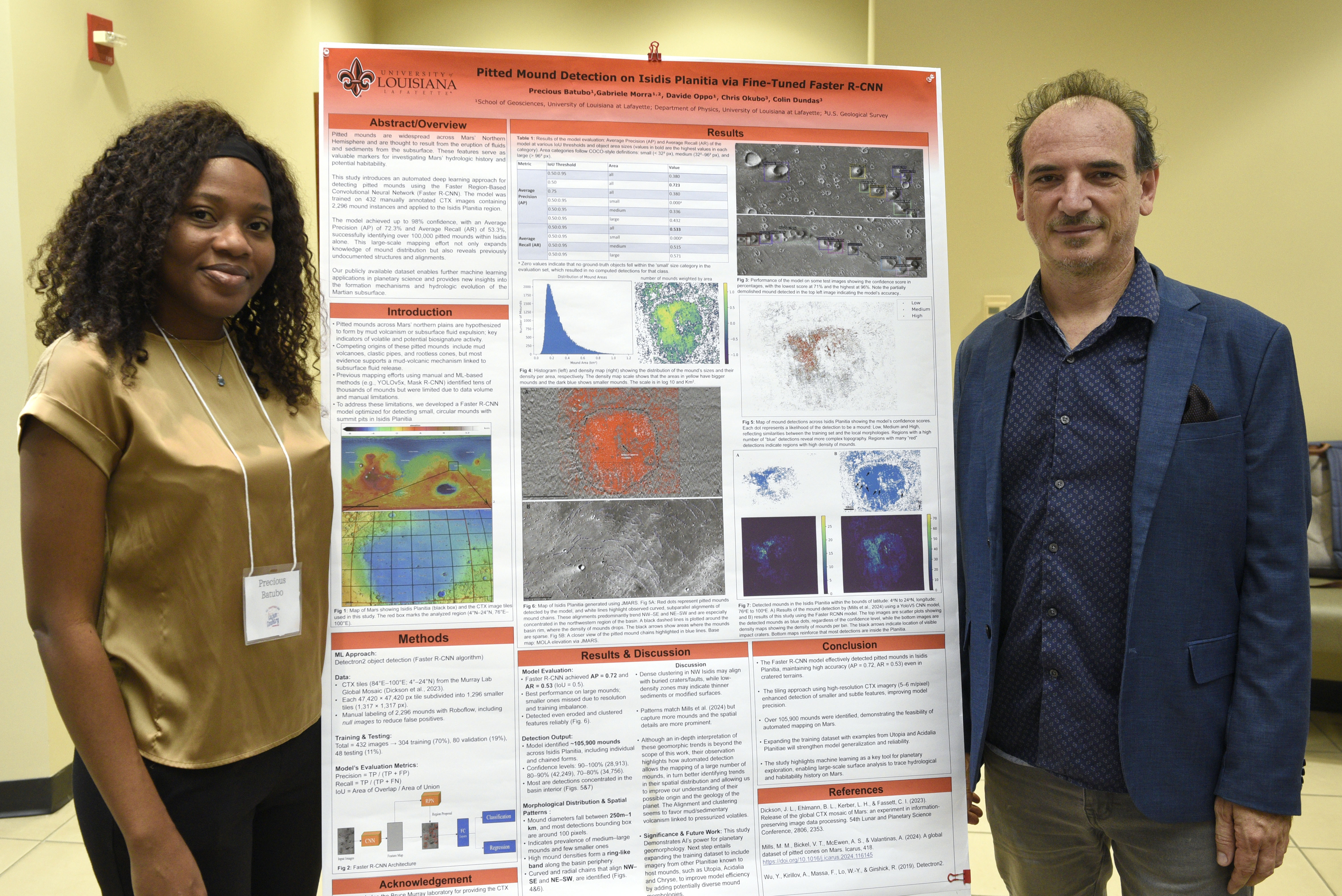 Tue, 11/04/2025 - 9:24amOn the evening of Thursday, 16 October 2025, we celebrated the research activities of our undergraduate and graduate students at a research poster presentation and reception. Student researchers exhibited eighteen posters and explained their research to the visitors. A large group of alumni, students, faculty, and friends of the college were able to attend this exciting and informative event. Photos of the presenters with their posters are provided below. Please visit the Fall 2025 Student Research Poster Presentation and Reception page to view some additional photos showing interactions between the visitors and the presenters and some reception photos.