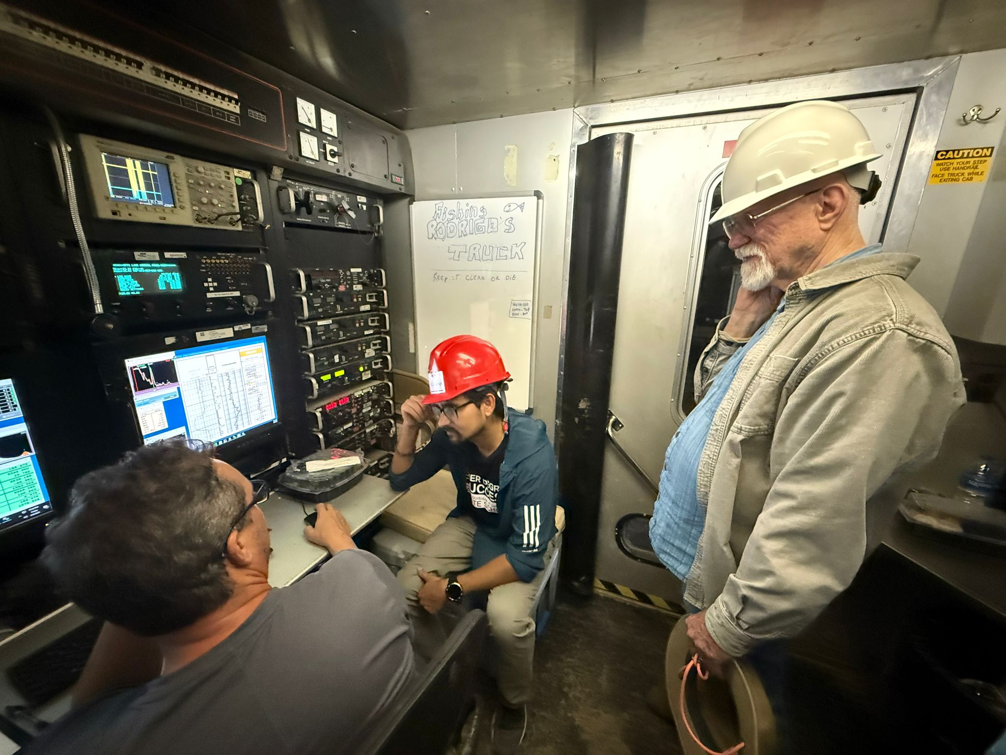 Ujjwal and Hamza summarized their visit as follows. "Upon arrival, we were warmly welcomed by Mr. Chase, the site engineer, and Mr. Ansley, the site geologist, who walked us through the operations and shared valuable insights about the project. The highlight of the visit was getting to observe the well logging process firsthand. The crew was running a triple combo tool, which measures gamma ray, neutron/density porosity, resistivity, and spontaneous potential logs simultaneously. Watching how the tool was lowered into the borehole, how the logs were calibrated, and how different lithologies like sand and shale appear on the logs gave us a much clearer picture of how subsurface data is collected and interpreted. We even got a glimpse of how hydrocarbons can show up in the log responses. Overall, this one-day field trip gave us a deeper appreciation of the technical and operational aspects of hydrocarbon exploration."